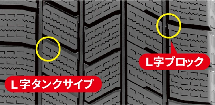 ラグ溝の変形を抑え雪上性能向上に貢献 – ラグ溝倒れ込み抑制サイプ
