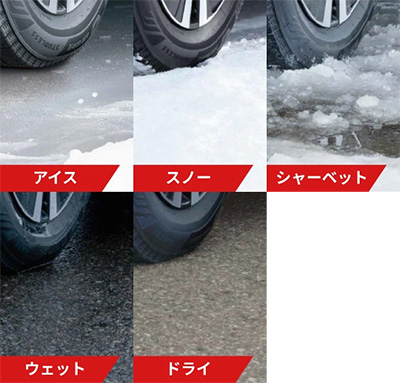 日本の冬道で想定される様々な路面状況に対して高水準に対応